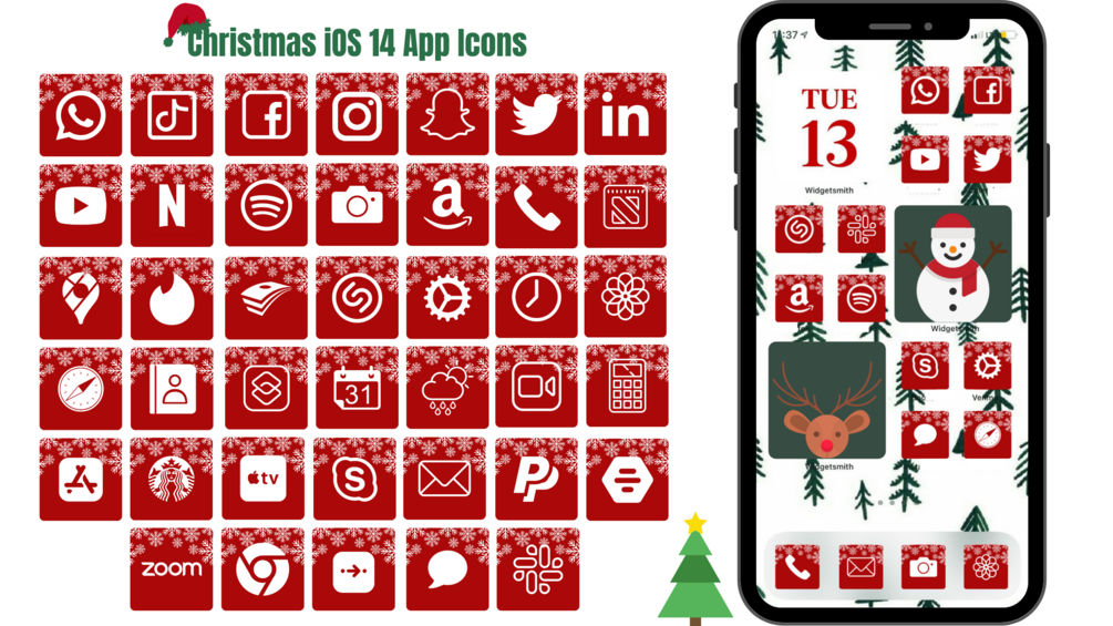 Christmas Xmas iPhone iOS icons (40 app icons, widgets and wallpaper included.)